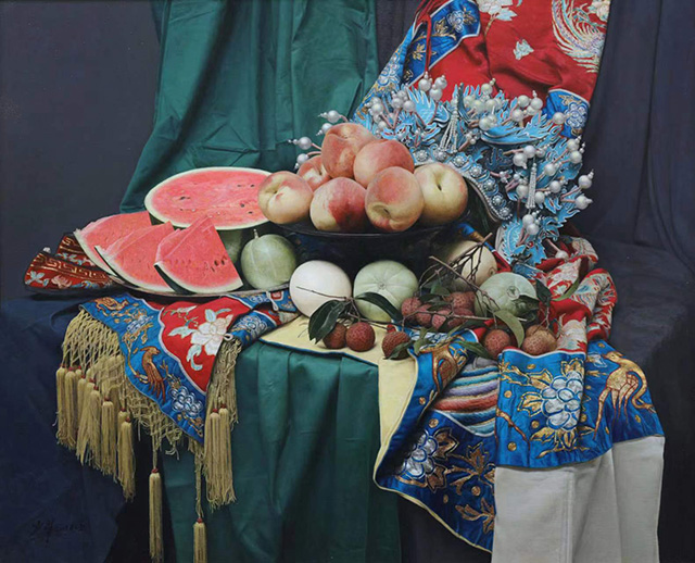 《有戏曲故事的静物》于少非 布面油画 80x90cm 2016年