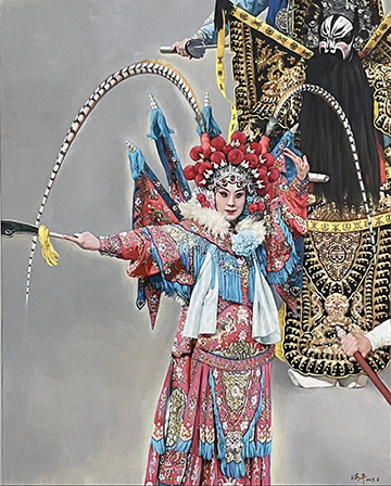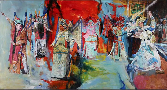 戏曲是中华优秀传统文化的瑰宝。从妆容服饰的色彩美,到舞台布景的意境美,再到唱念做打的形式美,戏曲艺术的独特魅力经久不衰。油画作为百余年前从西方传入中国的视觉艺术形式,在一代又一代中国艺术家对油画民族化的不断探索中,将戏曲与油画加以融合,不仅为戏曲艺术的表现和传播提供了新的方式,也为油画艺术的创作聚焦了新的主题,令国粹艺术之醇厚与绚丽油彩之芬芳在碰撞融合中产生耀眼的火花。