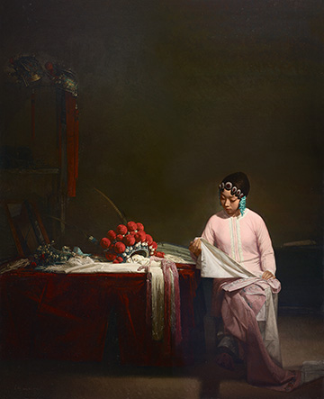 油画与戏曲的结缘开辟了戏曲题材创作新的境界,以油画的形式表现戏曲的台上幕后,展开了丰富的视觉世界。许多油画家热爱戏曲,有的长期着迷,足有心得。他们对戏曲的热爱,体现了增加自身艺术修养、审美品味的自觉追求,也在绘画艺术与戏曲艺术相互融合的研究中增进了油画的表现力,在作品中展现出与戏曲艺术的文化共鸣。在这个展览中,可见几代油画家以戏曲为主题的创作风采,他们用自己独特的视角撷取舞台的一角,用自己的心灵体验戏曲的故事,在作品中传达出戏曲丰富的内涵,塑造了有性格、有神采、有风范的戏曲人物,折射出他们深厚的文化学养和对真善美的讴歌。