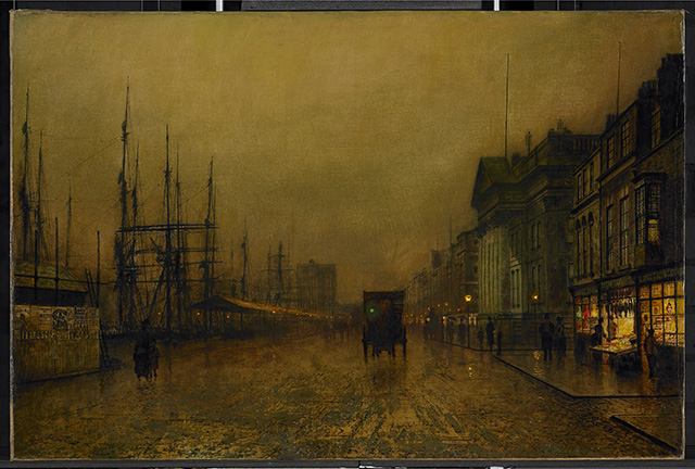 《利物浦海关大楼北侧》 约翰·阿特金森·格里姆肖 布面油画 1880-1890