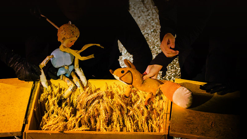 F·派剧场《小王子之星际旅行》满满亮点,多人控偶的偶戏表表演让各种玩偶在舞台上复活,将观众带入小王子的幻镜世界。舞台设计创意充满想象,大胆运用了大小各异的储物箱,通过演员们的肢体运动将一个个木箱在舞台空间中连接与流动,好比宇宙星辰变换,更在不断被打开的箱子中,呈现给观众一个又一个惊喜的讲故事场景和情境。更有现场实时拍摄的形式营造电影般的实验影像,即运用现场实时拍摄和剪辑的实验影像,在舞台上营造出一种如电影般华丽的梦幻感,虚实间变幻莫测,让观众的脑洞大开!
