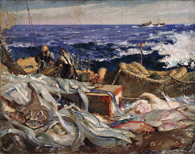 戴泽 《在海洋上(渔船)》 74×93cm 布面油彩 1961年 中央美术学院美术馆藏