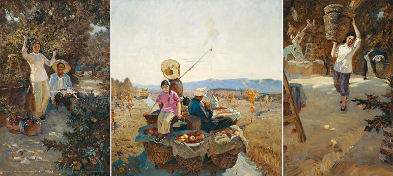 任梦璋 《摘苹果》 118x74cm 119x115.5cm 120x75.5cm 布面油彩 1957年 中央美术学院美术馆藏