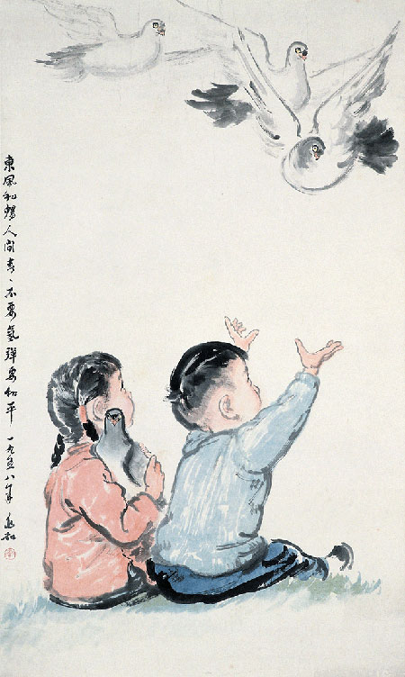 蒋兆和 《东风要和平》 120×72.5cm 纸本设色 1958年 中央美术学院美术馆藏