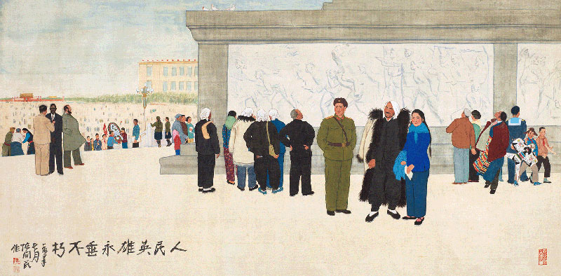 陈开民 《人民英雄永垂不朽》 99×200cm 绢本设色 1963年 中央美术学院美术馆藏