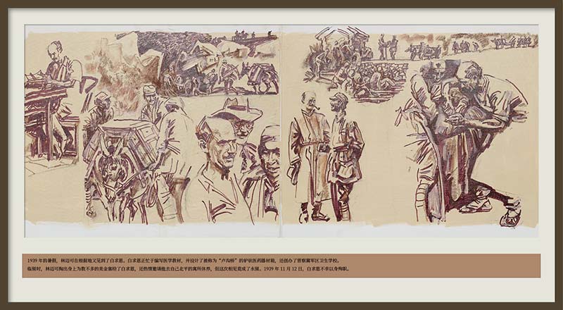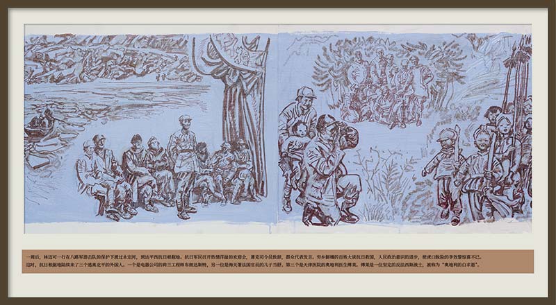 今年是中国人民抗日战争暨世界反法西斯战争胜利80周年,我们特别策划推出“传向世界的延安电波”主题展览,展出我国著名革命历史画家沈尧伊以“抗战”为背景创作的彩色连环画及素描作品,带我们穿越时空,重温那段“用生命写就史诗”的岁月。此次展出的连环画聚焦于国际友人林迈可的故事,他穿越封锁线奔赴敌后,用相机定格八路军的战斗英姿,用无线电传递中国的抗争强音。他的故事印证了正义无国界、抗争共担当的信念。另外展出的十张人物素描,包含徐悲鸿、贺绿汀、蒋兆和、冼星海、李桦、聂耳、马思聪、郑律成、马可、古元等音乐家与美术家的肖像,他们在特殊时期用各自专业所长,表达着爱国情怀,他们的艺术创作,同样是抗战精神不可或缺的激昂乐章。