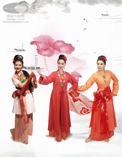 三朵“水红莲”(左起王丽达、雷佳、王喆)同绽放(服、化设计:李锐丁)