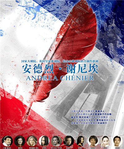 国家大剧院联合“世界四大歌剧院”之一的英国皇家歌剧院与美国著名的旧金山歌剧院制作的歌剧《安德烈·谢尼埃》于2015年1月在英国皇家歌剧院首演。这也是国家大剧院与英国、美国这两家著名剧院首度联合制作的第一部歌剧。国家大剧院歌剧总监、首席指挥吕嘉执棒,著名歌剧导演大卫·麦克维卡执导。活跃在世界歌剧舞台的中外歌唱家卡曼·查涅夫、莫华伦、阿玛丽莉·尼扎、孙秀苇、阿尔贝托·卡扎雷、袁晨野等领衔,共同演绎这部发生于风起云涌时代里的不朽爱情史诗。